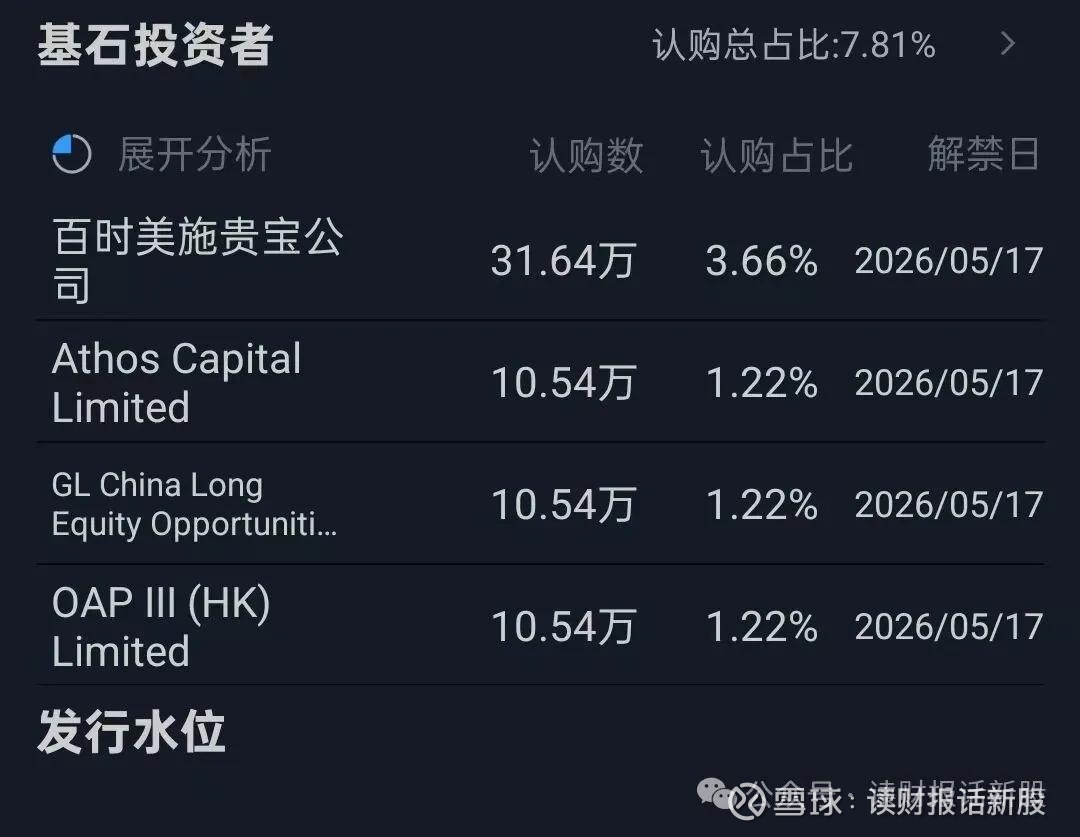 百利天恒$百利天恒(02615)$ 的基石阵容,除了富国基金能打外,其他都是杂毛,且基石份额才不到8个点,说明了机构不太认可公司