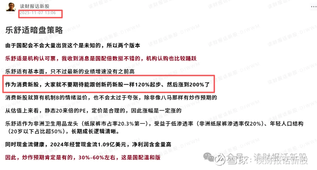 乐舒适作为消费新股,就不要期待能跟创新药新股一样120%起步、然后涨到200%了