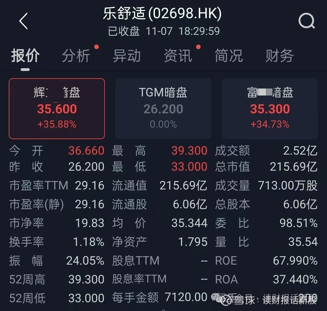 2、今天是乐舒适$乐舒适(02698)$ 的暗盘