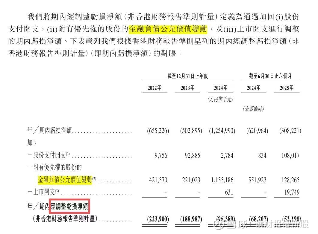 值得关注的是,很多股友对其亏损表示担忧,但大家都误解了——乍一看财务数据,都以为22、23年、24年的亏损分别为6.5亿、5亿及12.5亿,但事实上22、23年、24年实际仅亏损2亿、1.8亿和9600万,亏损明显大幅收窄。为何会有这种误解呢?听我细细说来:从招股书看,亏损中的大头是“附有优先权的股份的金融负债公允”,几乎占了亏损的92%。可事实是,一旦公司成功上市,这部分债务自然就转化为股票了(且有锁定期)——拿2024年举例,表面上看是亏损12.5亿,实际上里面有11.6亿是“附有优先权的股份的金融负债公允”,简而言之,这并非公司的实际开支,而是一种“可消的金融负责”,若没上市才属于负债,若成功上市,则需重新计算亏损额——这也是为什么招股书中专门列明了“经调整亏损净额”。可以看到,经调整,公司实际的营业收入呈现显著增长态势,亏损也在大幅收窄,这也是我为什么持续看好它的原因之一。