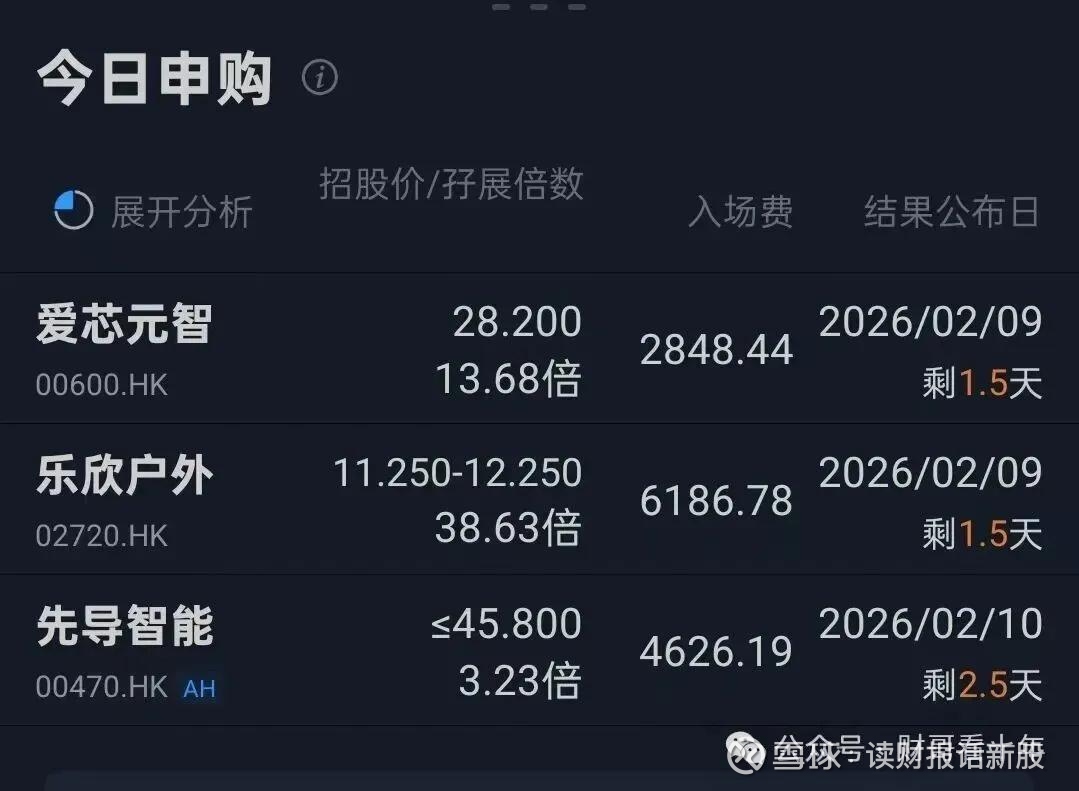 目前只有三只新股在招股,其中,爱芯元智$爱芯元智(00600)$ 和超级迷你票乐欣户外$乐欣户外(02720)$ 明天早上截止
