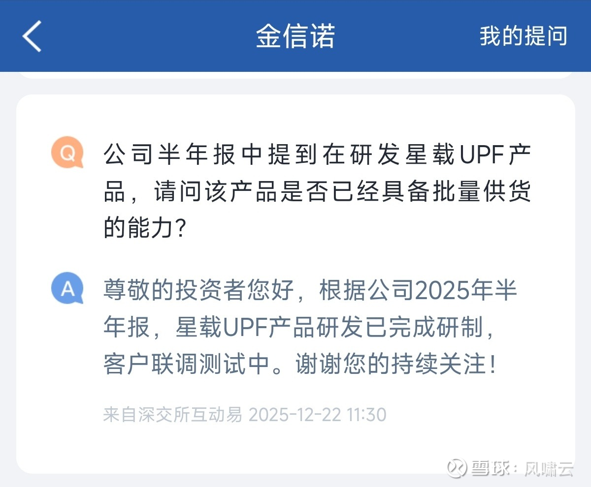 星载核心产品:星载 UPF(用户面功能)产品完成研制,进入客户联调测试阶段,是低轨卫星互联网核心网关键设备,适配大规模星座组网需求,未来有望成为中国星网核心供应商。