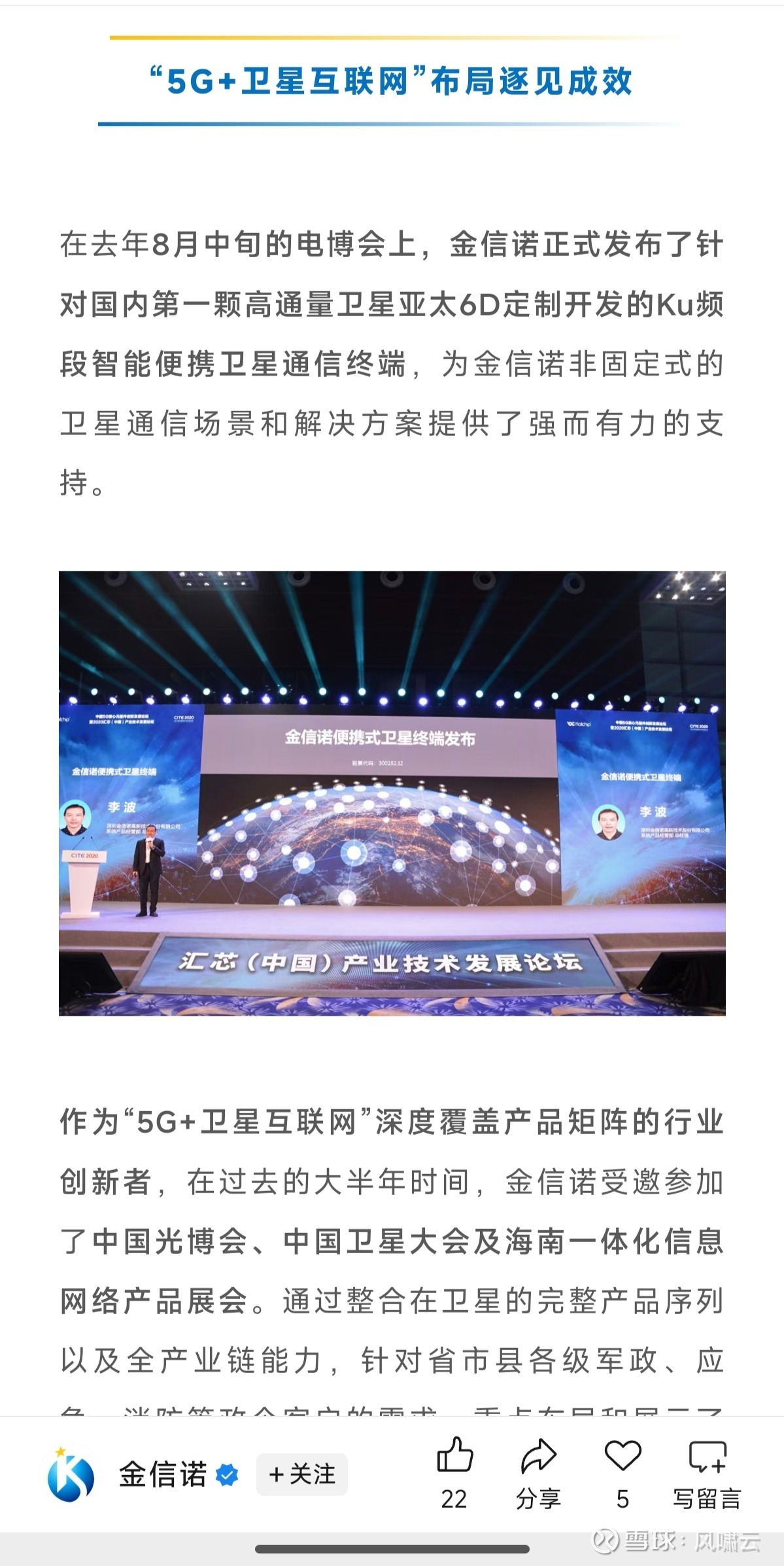 5G + 卫星互联网融合:公司作为 “5G + 卫星互联网” 深度覆盖产品矩阵的行业创新者,受邀参加中国卫星大会、海南一体化信息网络产品展会等行业活动,推动技术与场景的深度融合。