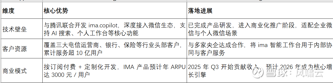 核心应用层:"元宝"AI 助手(聊天入口)+ima 智能工作台(办公入口)+ 搜一搜 AI 搜索(内容入口)