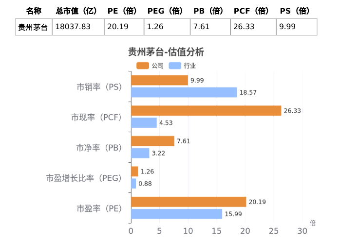 从自身估值走势来看,贵州茅台当前估值指标中PE、PB、PEG、PCF、PS处于近一年内相对均衡水平。