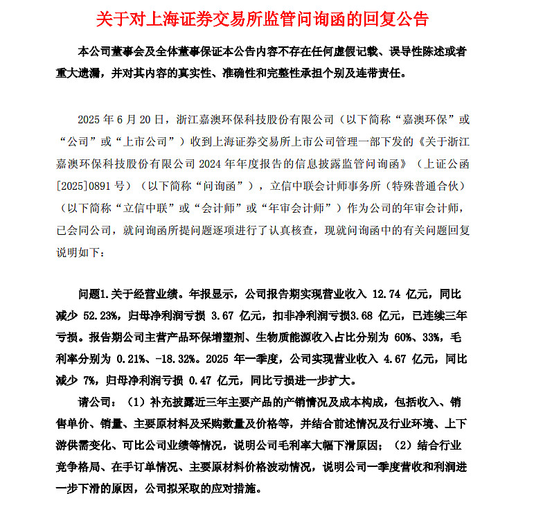 公司在回复中承认,其经营困境主要源于环保增塑剂业务受原材料价格下跌、下游需求疲软及行业竞争激烈影响,产品价格持续下滑,盈利能力微弱。生物质能源业务受欧盟反倾销调查影响。2024年该产品销售量骤降为2023年的26.56%,销售单价也持续下跌。