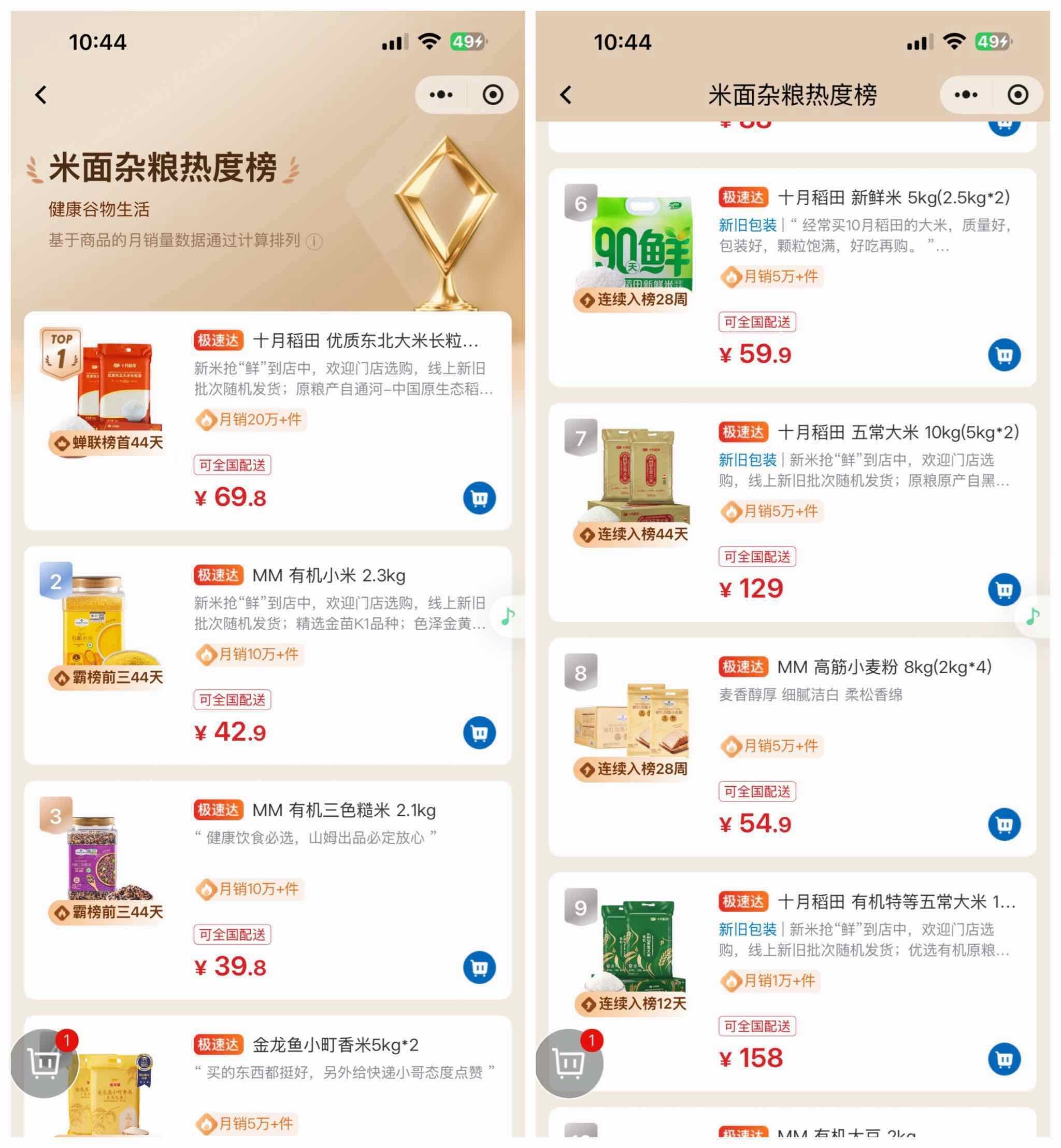 回复@恩德布施主: 就是,十月稻田电商起家的,先做的京东,然后淘天抖音拼多多那些,然后线下,像去年把不赚钱的社区团购砍了,又进到山姆啊,胖东来那些,都是霸榜,像山姆这个去年一个月卖2000万,现在一个月卖5000万,山姆米面杂粮前十里面有一半都是他们家的,那个卖的最好的长粒香你可以试一哈查看图片//@恩德布施主:回复@你不知道我知道的老徐:尝试用最精炼的话语总结:十月稻田是一家卖优质东北大米的互联网电商
