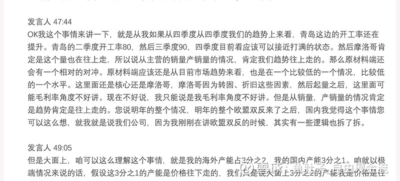 青岛工厂,满产满销。泰国工厂,供不应求,从1600万条产能向1800万条挖潜进军。摩洛哥,3月日均产能2.5w,二季度满产满销,价格非常高,利润非常高。