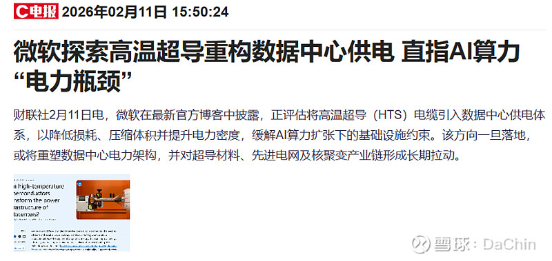 微软探索高温超导(HTS)重构数据中心供电的消息,对安靠智电构成明确利好,原因如下: