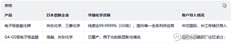 日本右翼军事扩张及其引发的技术管制与供应链脆弱性,显著利好光刻胶原材料的国产化进程,而华融化学作为国内高端湿电子化学品(尤其是电子级氢氧化钾和G5盐酸)的稀缺供应商,正处于历史性机遇窗口,实质性受益明确。