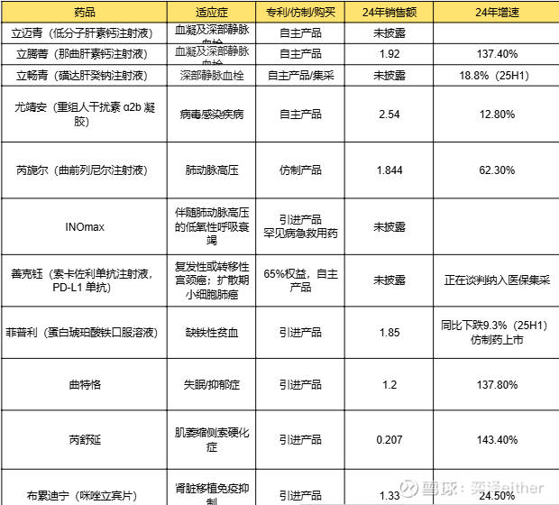 3、部分引进药品、自研药品已获得一定的市场地位和认知,作为公司持续的现金流压舱石