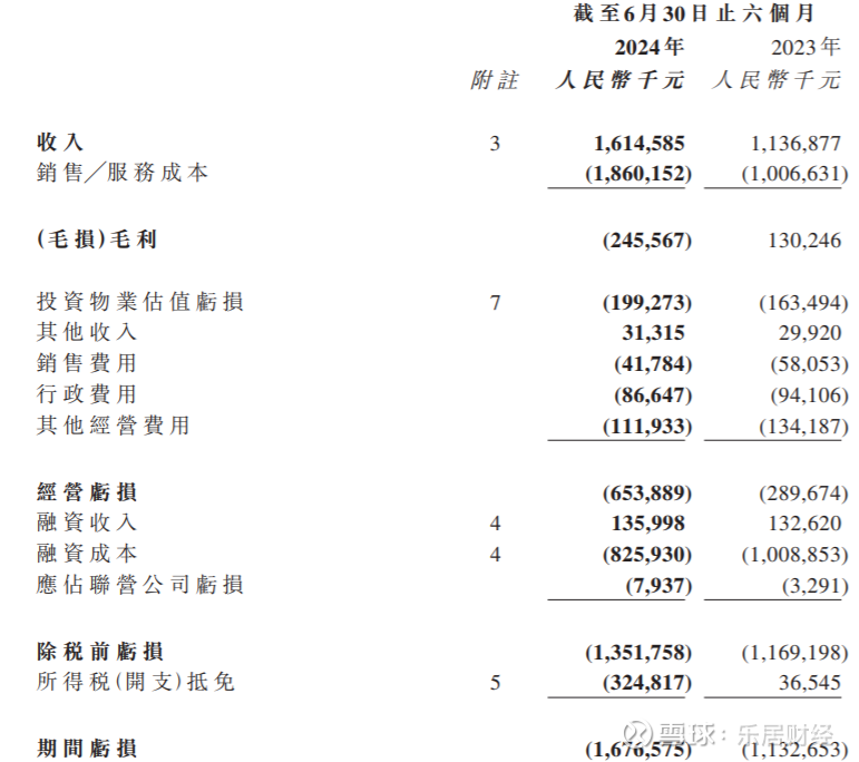 2024年上半年,阳光100中国收入约16.15亿元,较2023年同期增长42%;2024年上半年毛损约2.46亿元,主要是由于交付物业的毛利为亏损。由于本报告期内交房毛利下降以及所得税增加,导致期内确认亏损约16.77亿元。