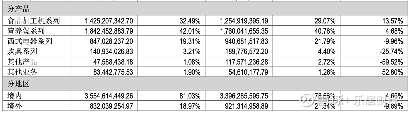 但从最新披露的2024中报业绩来看,九阳“食品加工机系列”的营收占比反弹回升,而该品类的营收同比增长幅度达到13.57%,远高于九阳整体营收增长幅度。可以说,在另外三大业绩占比较高的产品品类营收出现大幅下滑的当下,豆浆机归属的“食品加工机系列”产品,仍是撑起了九阳营收增长的最大支撑力。