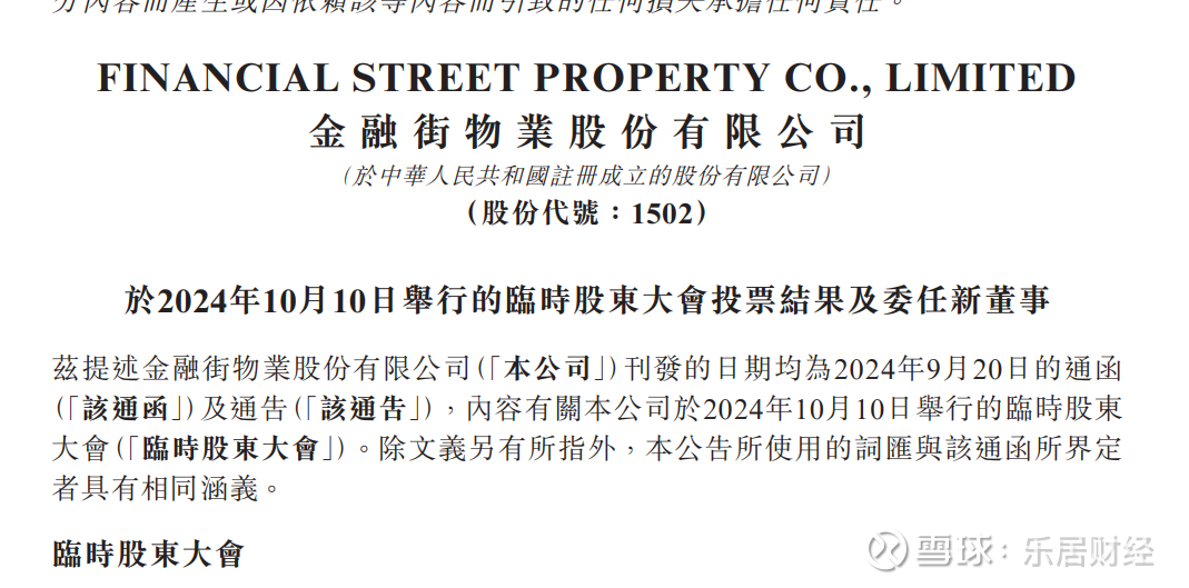 乐居财经 李兰 10月10日,金融街物业(01502.HK)发布公告,临时股东大会正式通过了关于委任郭明明为公司非执行董事的议案。郭明明将担任公司非执行董事及审核委员会委员,自临时股东大会结束后生效。