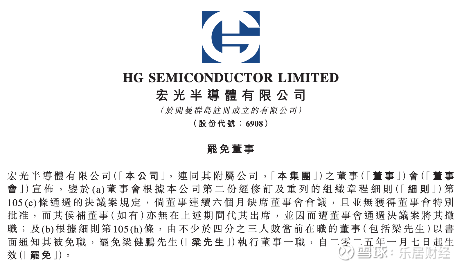 宏光半导体进一步披露,罢免的原因在于,梁健鹏自2024年3月起已连续九个月失去联系、未能出席及参与所有董事会会议,且未能以执行董事的身份履行其职务及职责。