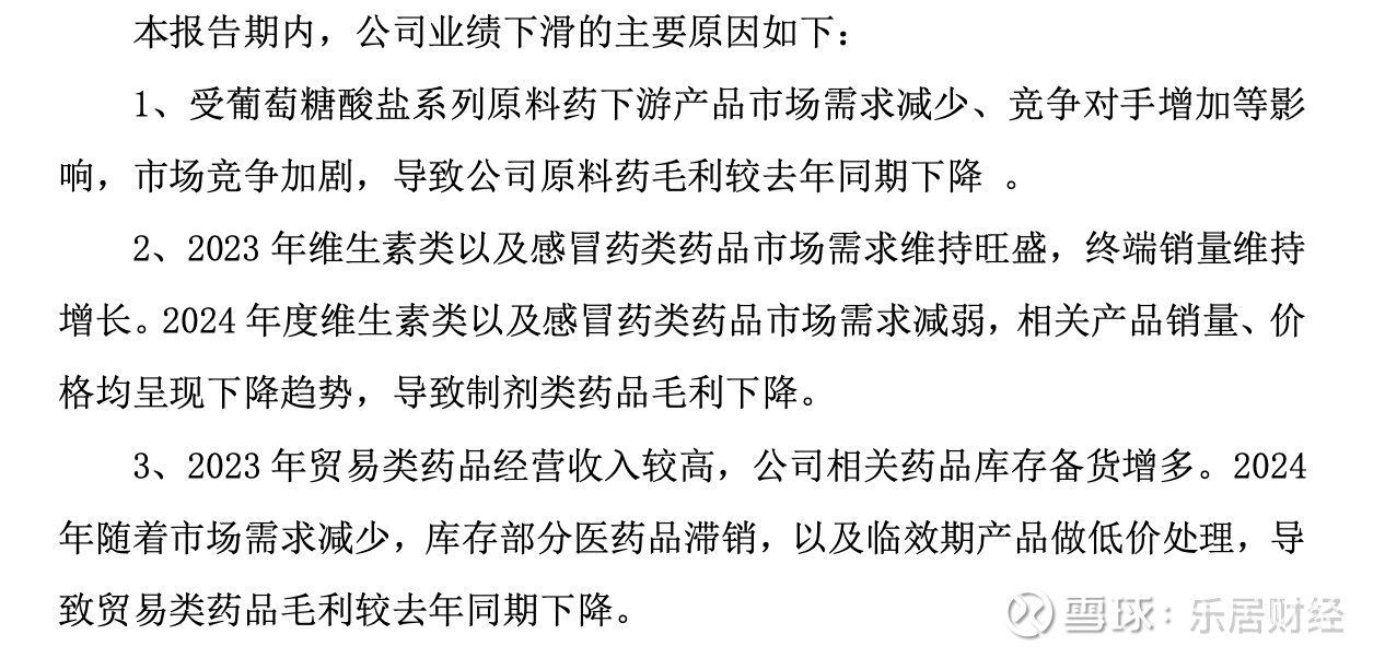 2023年维生素类以及感冒药类药品市场需求维持旺盛,终端销量维持增长。2024年度维生素类以及感冒药类药品市场需求减弱,相关产品销量、价格均呈现下降趋势,导致制剂类药品毛利下降。