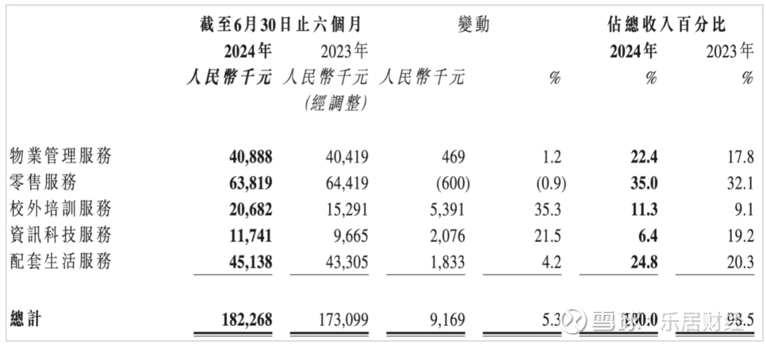 物业管理服务与配套生活服务规模相当,分别收入8434.4万元、8356.1万元,占总收入的24.4%、24.2%。