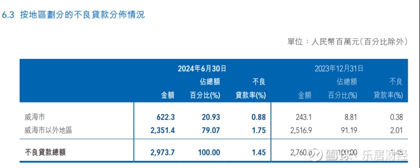 但从财报可以窥见,威海市以外地区的不良贷款率偏高,达到1.75%,而威海市以内不良贷款率为0.88%。