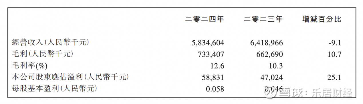 2024年,大成食品经营收入我58.35亿元,同比减少9.1%;公司股东应占溢利为5883.1万元,同比增长25.1%;毛利率12.6%,同比上升2.3个百分点。