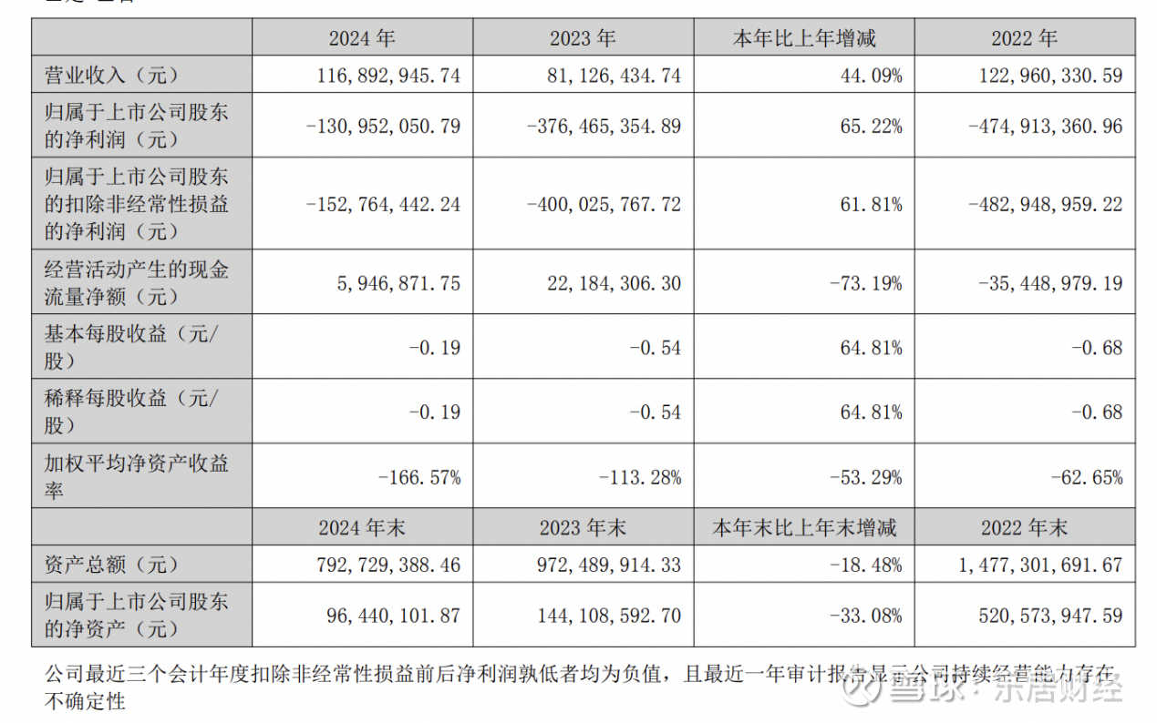 2024年度,*ST名家实现营业收入1.17亿元,同比增长44.09%;归属于母公司股东的净利润-1.31亿元,同比收窄65.22%。截至2024年末,公司总资产7.93亿元,同比减少18.48%,归属于母公司所有者权益9644.01万元,同比减少33.08%。