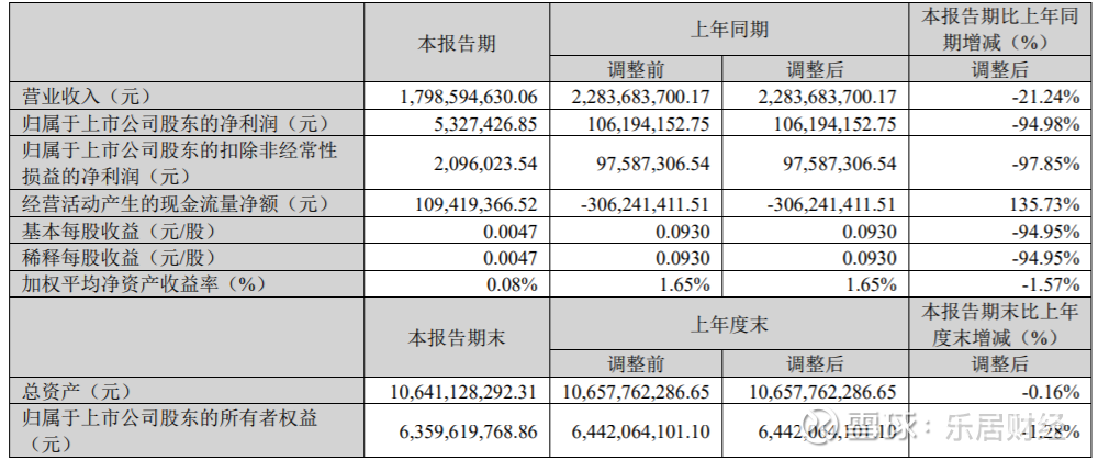 2025年第一季度,公司实现营业总收入17.99亿元,同比下降21.24%;归属于上市公司股东的净利润为532.74万元,同比下降94.98%。
