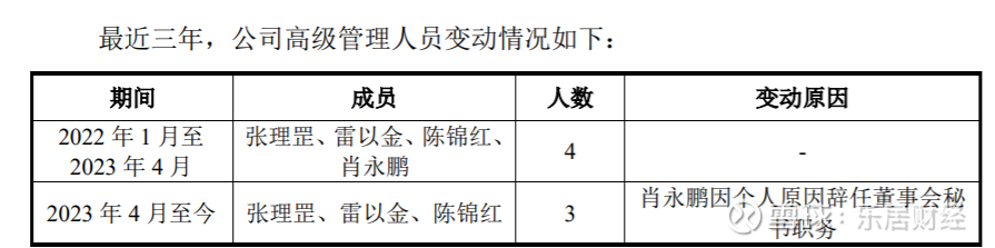 招股书提到,2023年4月,基于公司的人事安排调整及肖永鹏个人职业发展规划,经协商公司与肖永鹏解除劳动关系,由董事、财务总监陈锦红兼任董事会秘书。