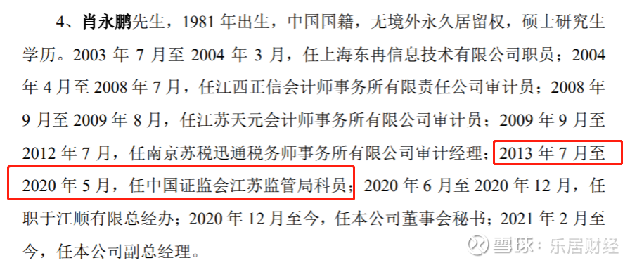 肖永鹏,1981年出生,中国国籍,无境外永久居留权,硕士研究生学历。他于2013年7月至2020年5月,任中国证监会江苏监管局科员;2020年6月至2020年12月,任职于江顺有限总经办;2020年12月至2023年4月,任公司董事会秘书;2021年2月至2023年4月,任公司副总经理。