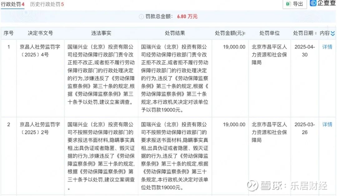 一个月后,国瑞兴业又因为经劳动保障行政部门责令改正拒不改正,或者拒不履行劳动保障行政部门的行政处理决定的行为,又被处罚1.9万元。