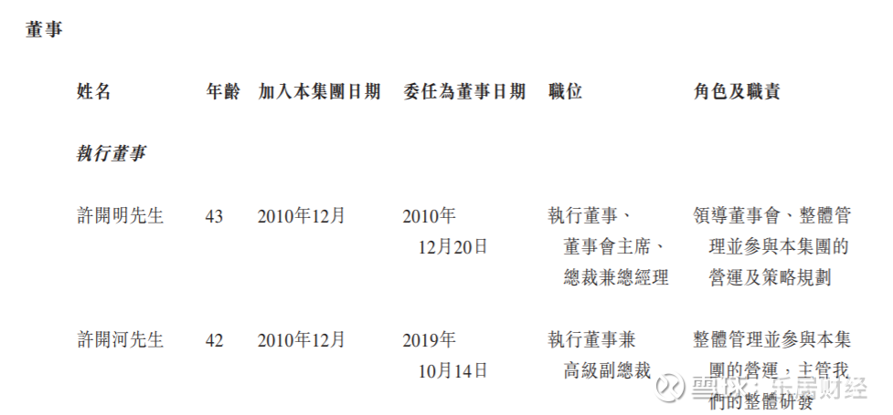许开明、许开河兄弟两人为福建人,许开明担任公司执行董事、董事会主席、总裁兼总经理,许开河担任公司执行董事兼高级副总裁。