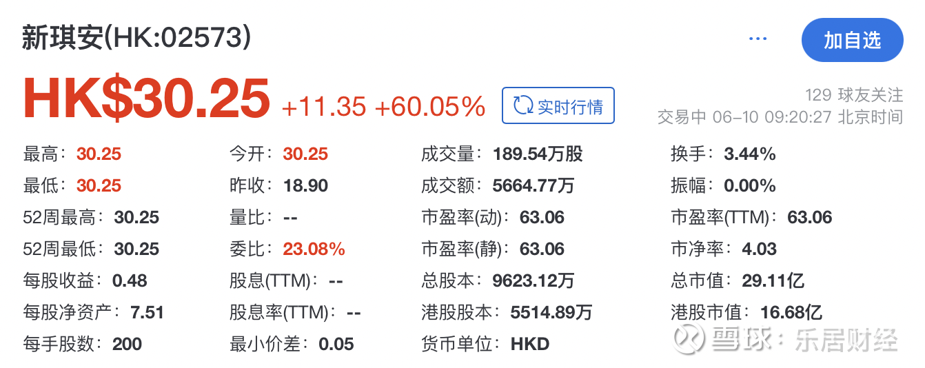 乐居财经 吴文婷 6月10日,新琪安(02573.HK)在港交所挂牌上市,民银资本独家保荐。其开盘报30.25港元,涨60.05%,总市值约29.11亿港元。