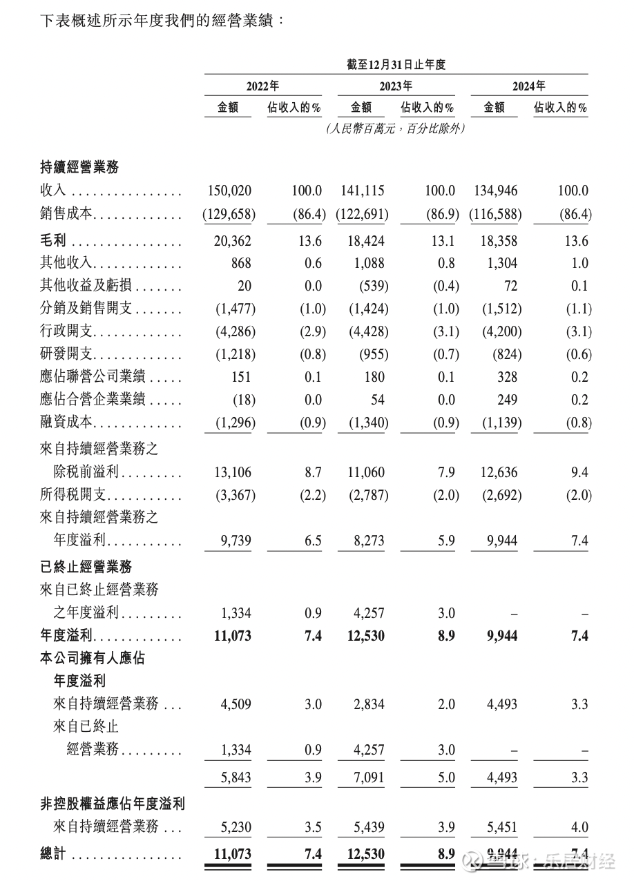 据招股书,2022年-2024年,新奥股份实现收入分别为1500.2亿元、1411.15亿元、1349.46亿元;年度溢利分别为110.73亿元、125.3亿元、99.44亿元。