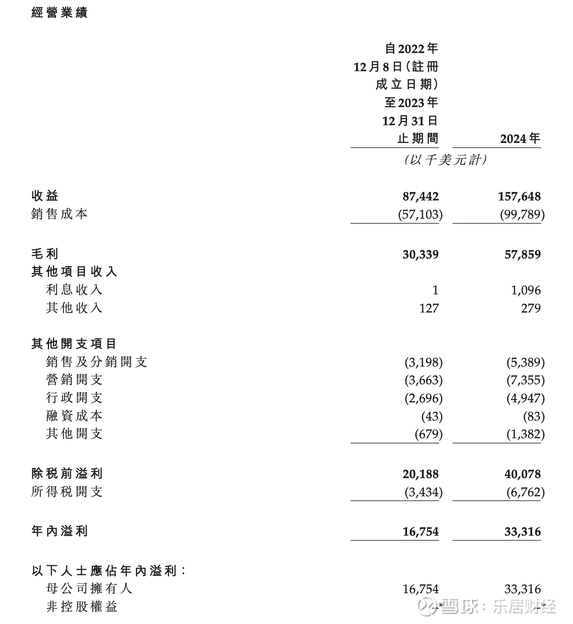 据招股书,2023年-2024年,IFBH实现收益分别为8744.2万美元、1.58亿美元(约合人民币11.34亿元);期内溢利分别为1675.4万美元、3331.6万美元,毛利率分别为34.7%、36.7%。