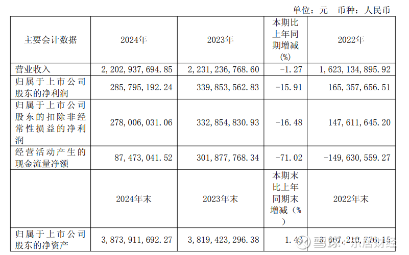 报告显示,伊力特公司2024年营业收入为22.03亿元,同比下降1.27%;归母净利润为2.86亿元,同比下降15.91%;扣非归母净利润为2.78亿元,同比下降16.48%;基本每股收益0.61元。