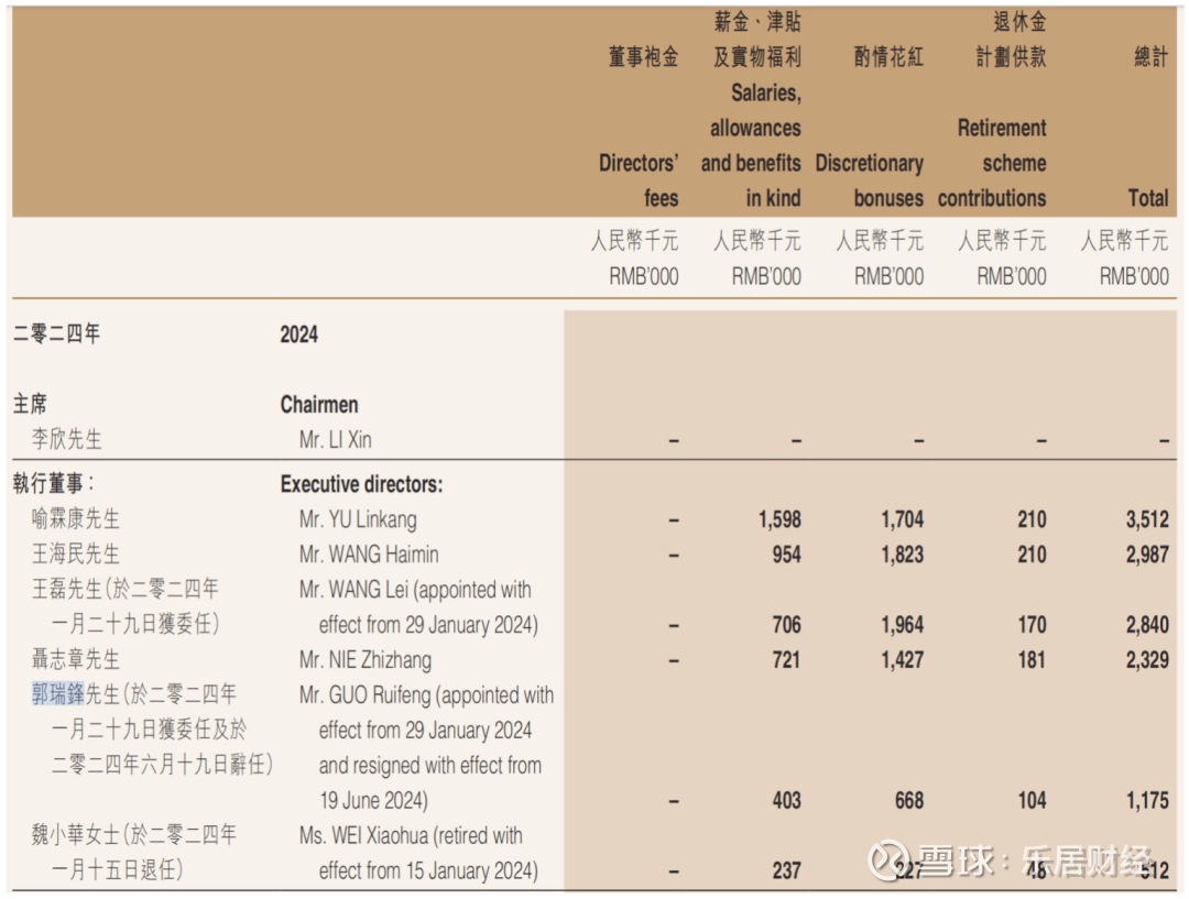 另外,去年1月29日与郭瑞锋一同获委执行董事及副总裁的王磊,2024年的总薪酬约为284.0万元,其领取的花红最高,为196.4万元。