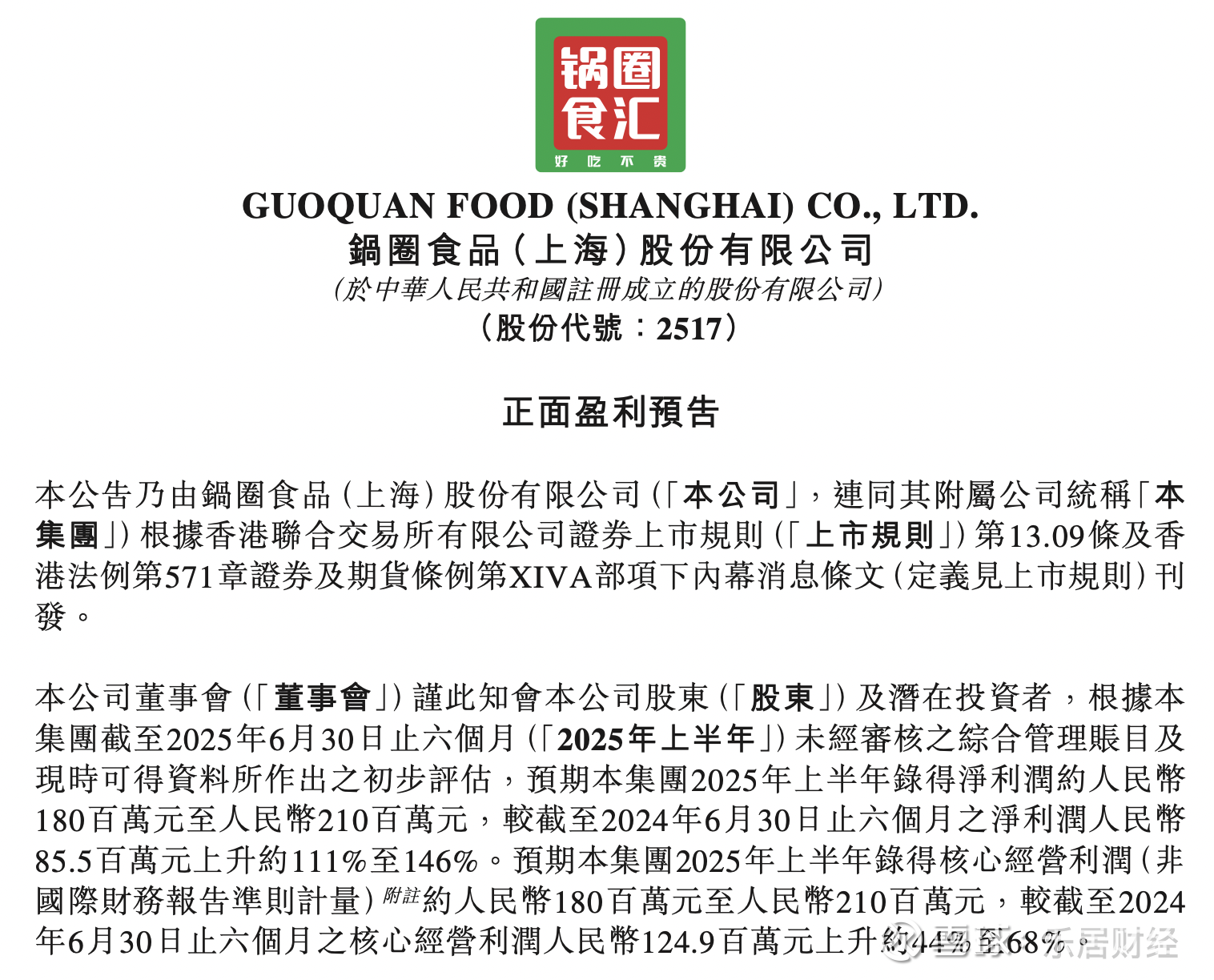 瑞财经 吴文婷 7月15日,锅圈发布正面盈利预告。