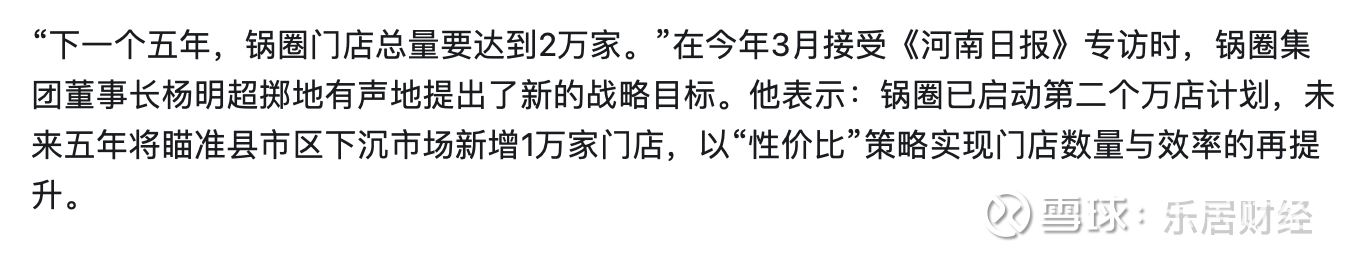 而在门店层面,锅圈则有更为明确的发展计划。“下一个五年,锅圈门店总量要达到2万家。”在今年3月接受访谈时,锅圈集团董事长杨明超掷地有声地提出了新的战略目标。
