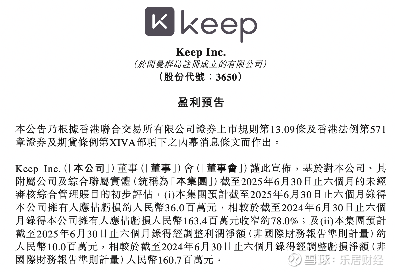 Keep表示,截至2025年6月30日止六个月,公司预期盈利能力改善主要得益于:聚焦调优业务结构及收入质量,实现毛利率提升;叠加AI技术赋能,稳步提高经营效率和组织人效,降低经营费用。基于上述,由于精简低效品类规模,短期内收入同比收缩,然而此举旨在重塑长期增长基础,提升持续盈利能力。