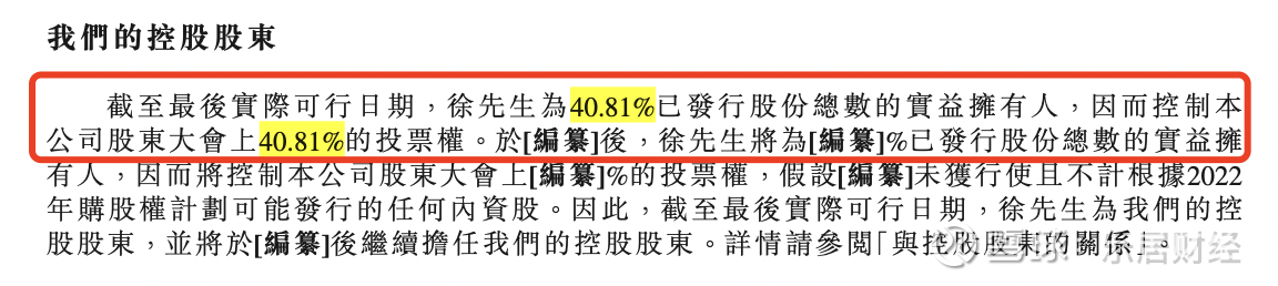 截至最后实际可行日期,徐亚飞为40.81%已发行股份总数的实益拥有人,因而控制公司股东大会上40.81%的投票权。徐亚飞担任公司董事长。