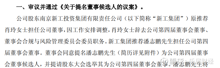 7月25日,南京证券公司第四届董事会第十一次会议审议通过《关于提名董事候选人的议案》,同意提名潘志鹏为第四届董事会董事候选人,其任期自股东大会审议通过之日起至本届董事会届满之日止,该议案尚需提交公司股东大会审议。