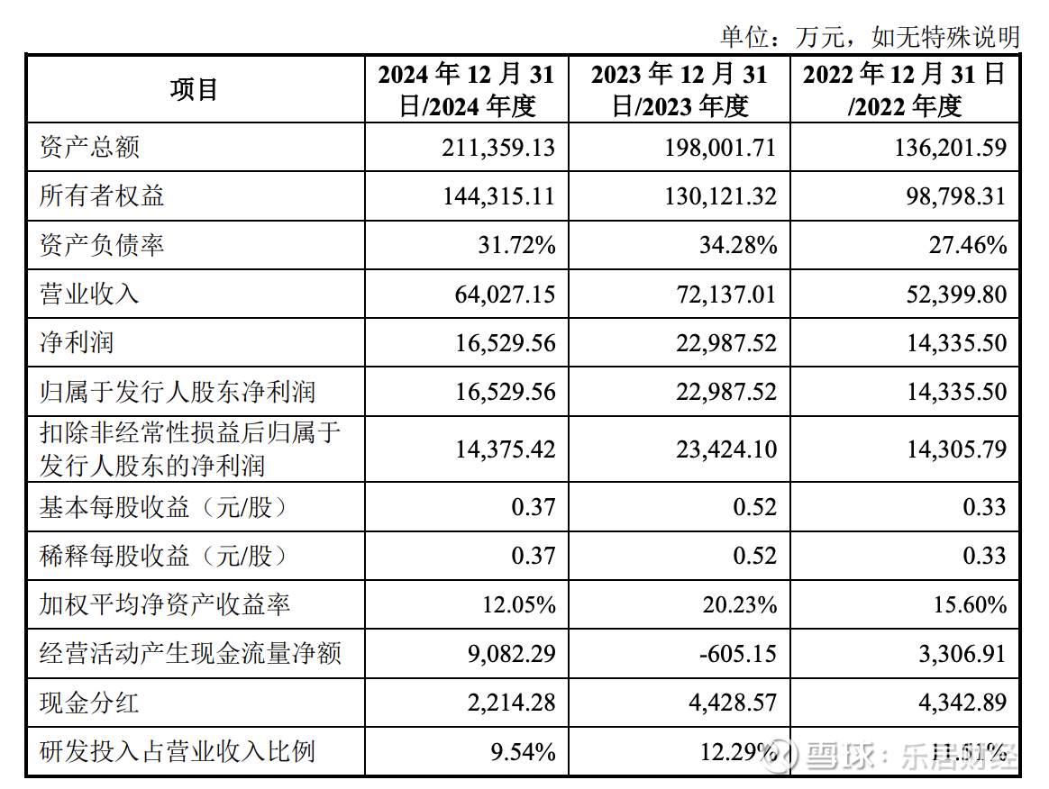 2022年-2024年(简称:报告期),未来材料分别实现营业收入5.24亿元、7.21亿元、6.40亿元,净利润1.43亿元、2.30亿元、1.65亿元,2024年营业收入同比下降11.23%,净利润同比下滑28.26%。其利润中,分别有1719.25万元、2396.39万元、2469.96万元为政府补助。