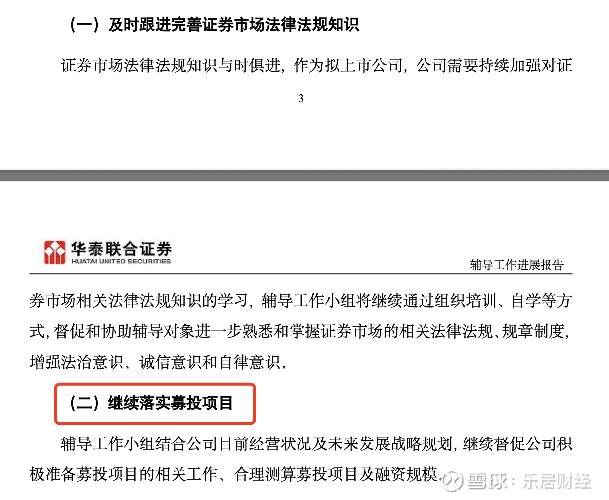 同时,辅导工作小组结合公司目前经营状况及未来发展战略规划,继续督促公司积极准备募投项目的相关工作、合理测算募投项目及融资规模。