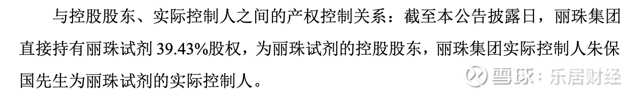 截至本公告披露日,丽珠集团直接持有丽珠试剂39.43%股权,为丽珠试剂的控股股东,丽珠集团实际控制人朱保国为丽珠试剂的实际控制人。