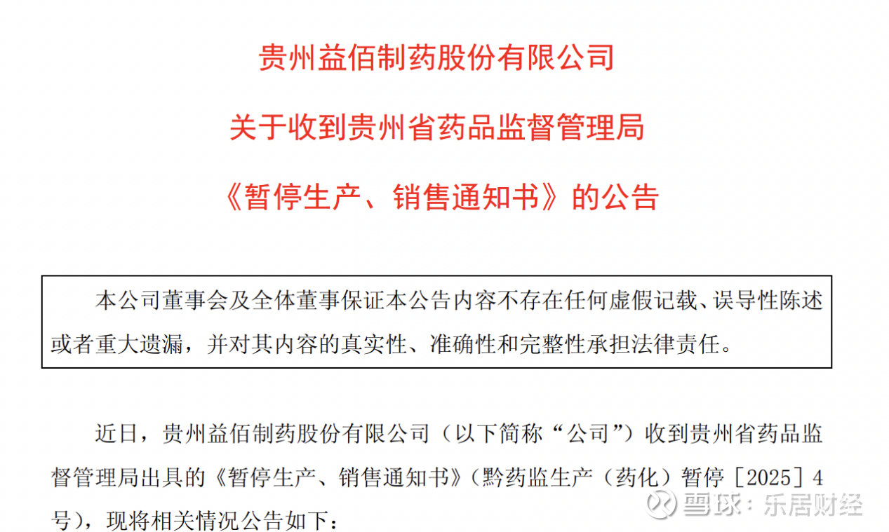 瑞财经 刘治颖8月5日,益佰制药(SH600594)公告,近日,公司收到贵州省药品监督管理局出具的《暂停生产、销售通知书》。