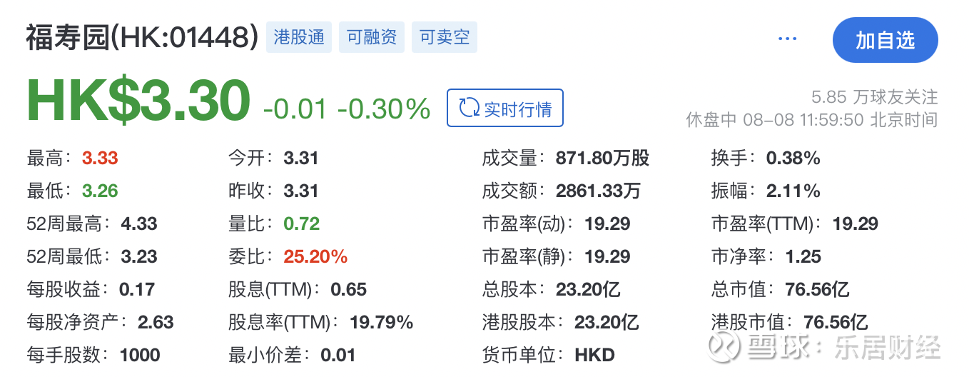 截至发稿时,福寿园报3.3港元,跌0.3%,总市值约76.56亿港元(约合人民币70亿元)。