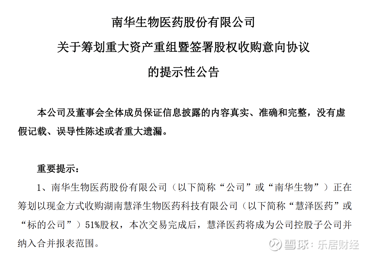 瑞财经 刘治颖8月11日,*ST生物(SZ000504)公告,公司正在筹划以现金方式收购湖南慧泽生物医药科技有限公司(以下简称“慧泽医药”)51%股权,本次交易完成后,慧泽医药将成为公司控股子公司并纳入合并报表范围。