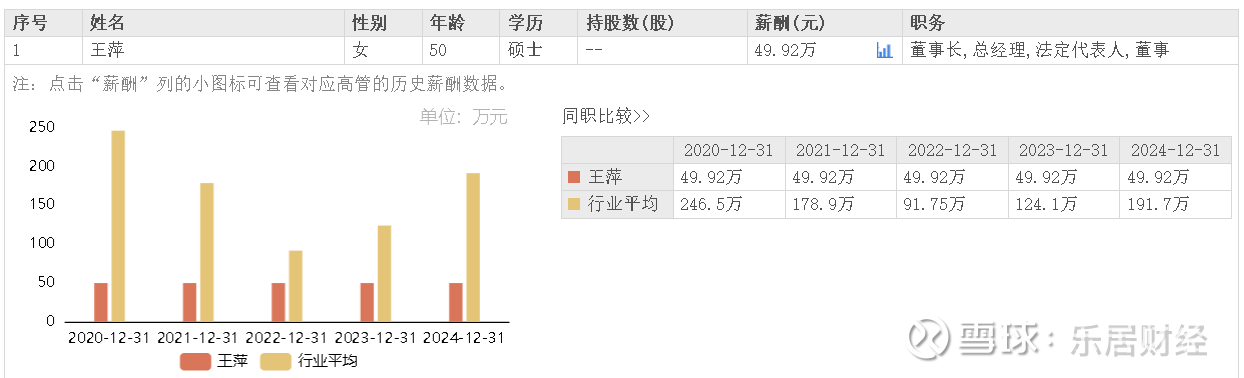 据东方财富网数据,博通股份女董事长王萍2020-2024年连续5年领薪49.92万元。