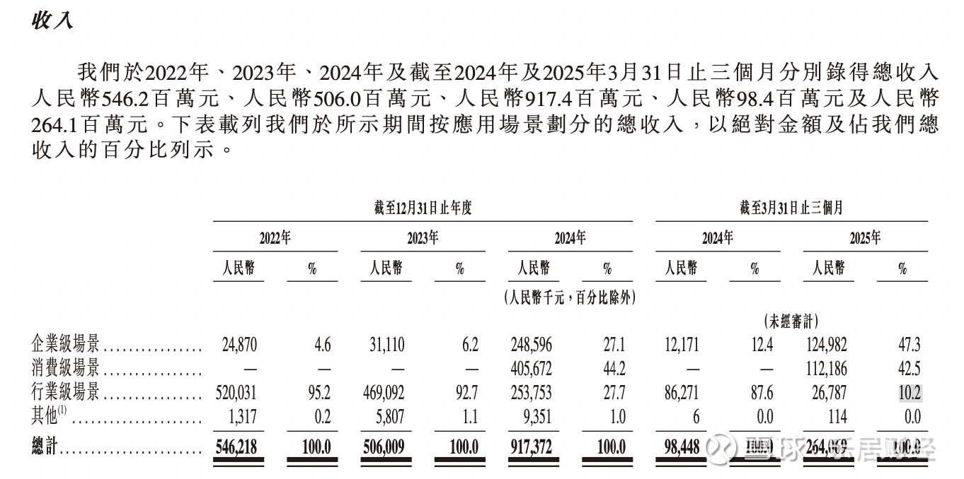 2025年第一季度,云天励飞行业级场景收入占比已经降至10.2%,而企业级场景及消费级场景的收入占比分别为47.3%及42.5%。