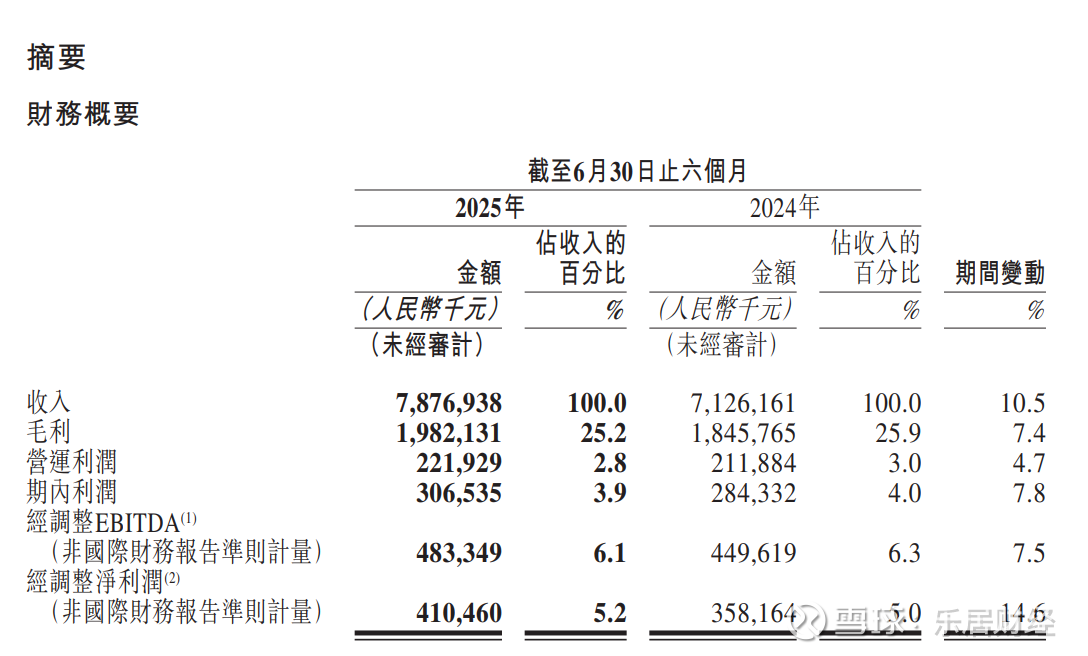 2025年上半年,途虎-W营业收入78.8亿元(人民币,下同),同比增长10.5%;经调整净利润4.1亿元,同比增长14.6%。毛利额20亿元,对应毛利率25.2%。