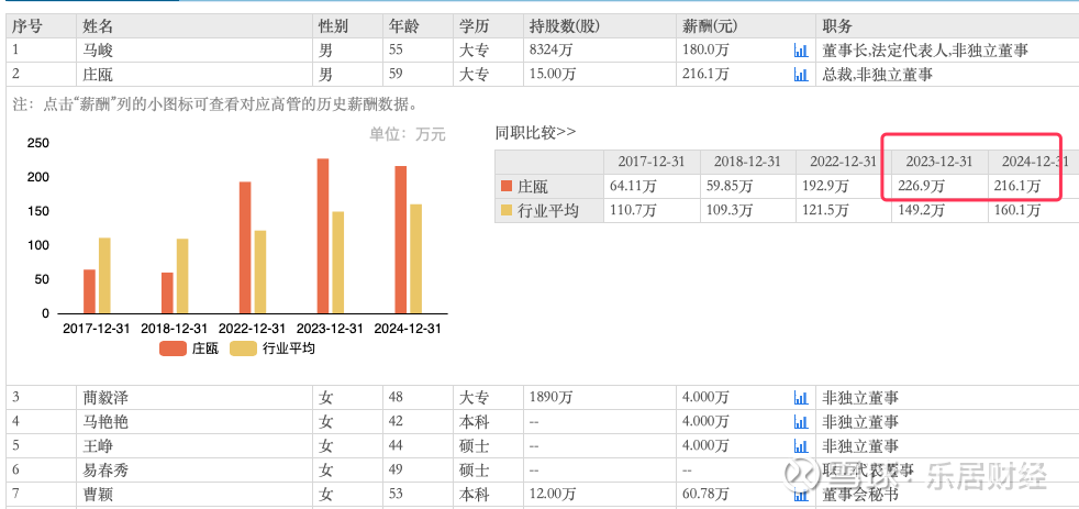 据瑞财社查阅,莱绅通灵59岁总裁庄瓯2024年领薪216万元,较上年薪酬微降。53岁女董秘曹颖60.78万元,薪酬微增。