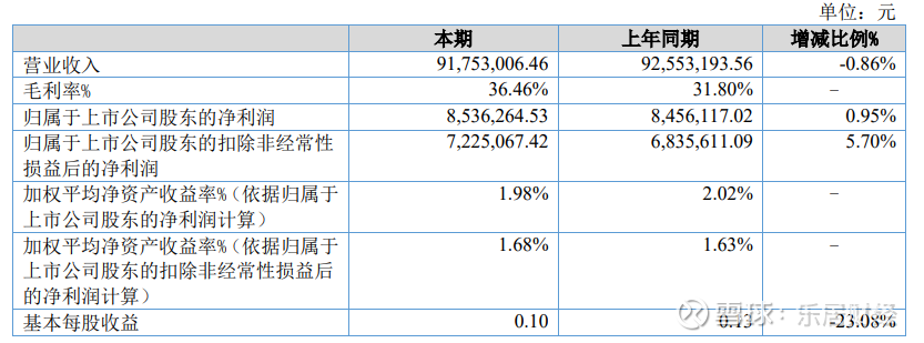报告显示,保丽洁公司上半年营业收入为9175.30万元,同比下降0.86%;归母净利润为853.63万元,同比增长0.95%;扣非归母净利润为722.51万元,同比增长5.70%;基本每股收益0.10元。